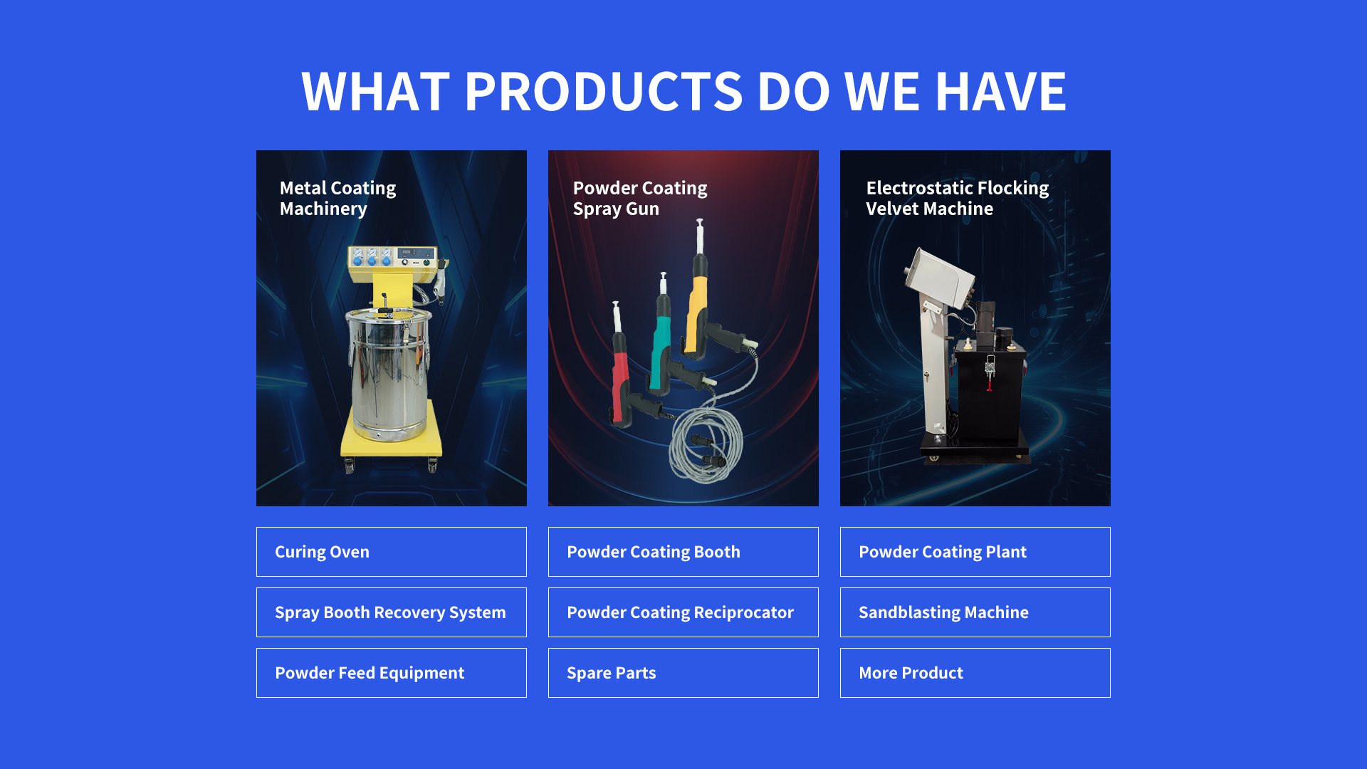 This Powder Coat Equipment is widely used in automotive, aerospace, construction, and appliance manufacturing. It coats car parts, bicycle frames, aluminum profiles, and household appliances. Its eco-friendly, solvent-free process makes it a preferred choice for industries focused on sustainability.